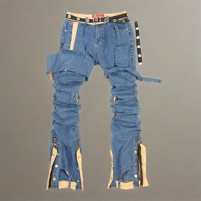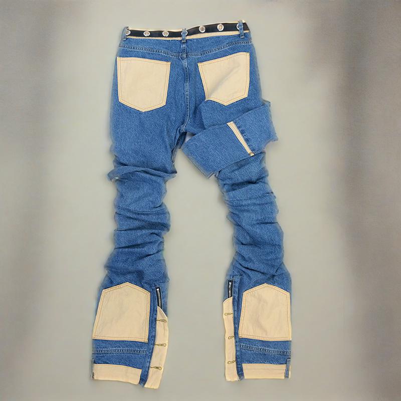 • Product description: Custom Denim Blue Jeans Men's Stylish Pants Hip Hop Pants Folds Stacked Pants