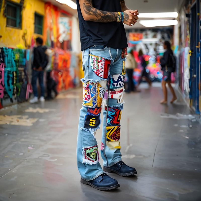 • Product description: Denim Clothing Manufacturer High Quality Wholesale Custom Patchwork Jeans Printed Multi-color Pants New Fashion Trend